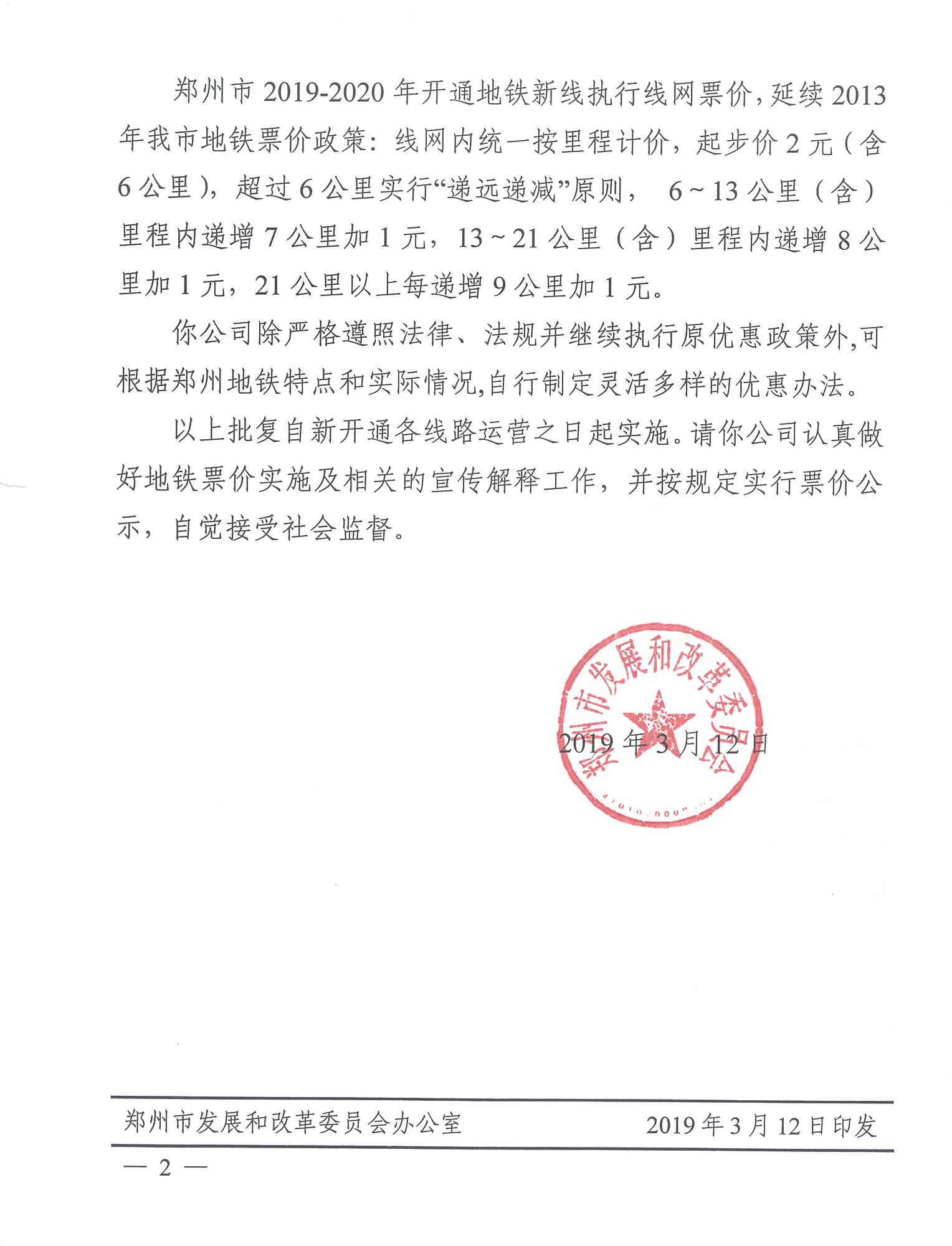 郑州市发展和改革委员会关于h漫 新线票价的批复
