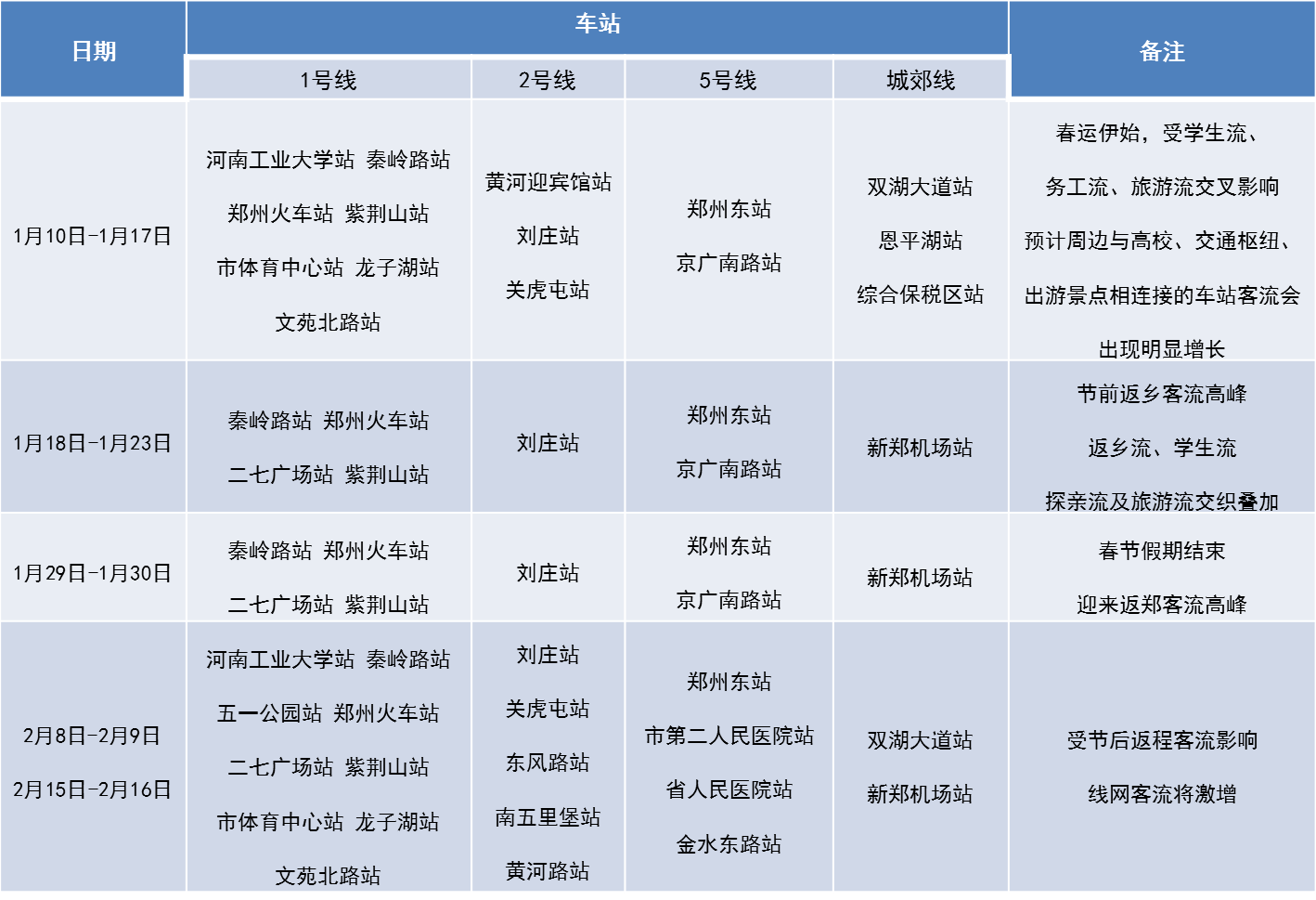 春运期间,全线网车站按照“三逢原则”加强对包裹和液体的检查力度,春运期间还将根据防控等级要求开展手检,请您听从车站工作人员指引,有序进站乘车。客流高峰期增加站厅、站台及出入口的安全巡逻频次,加大对出入口、卫生间、垃圾桶等重点区域的巡查力度,加强重点区域的消毒消杀工作,确保给乘客提供安全舒适的乘车环境,营造和谐、安定的节日氛围。