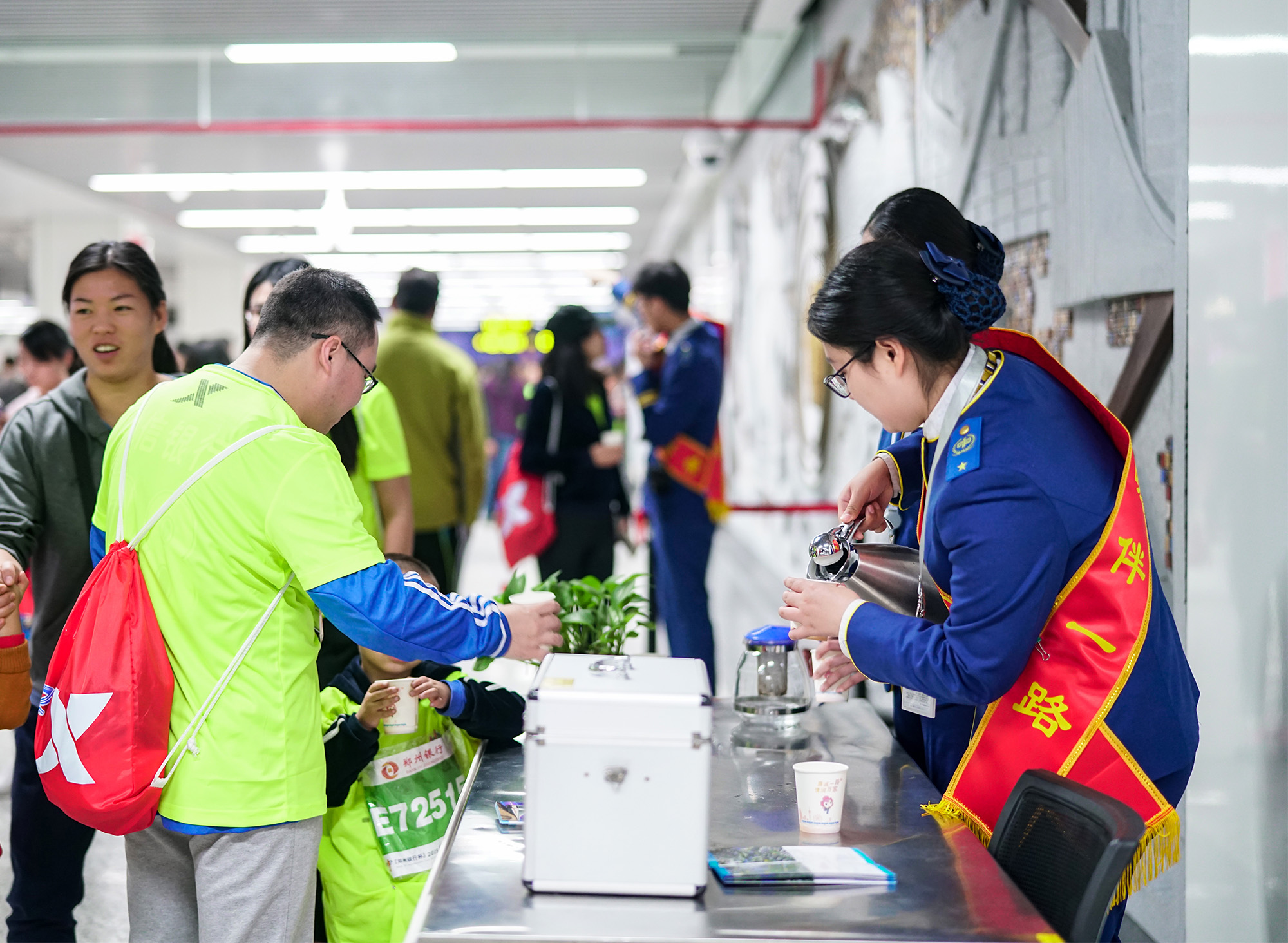 10月13日,2019郑州国际马拉松赛鸣枪开跑。地铁人坚守一线,全方位、多层次为马拉松赛事保驾护航。